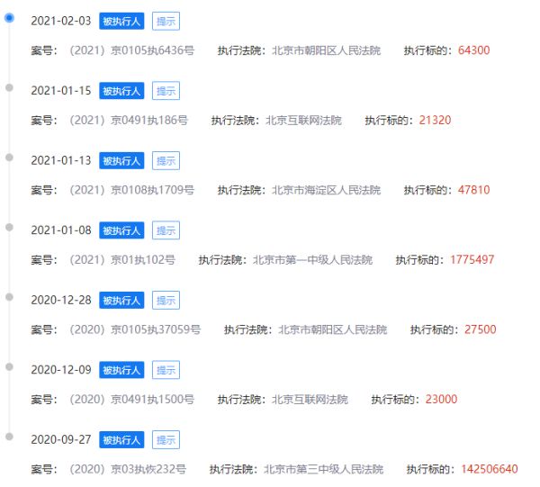 企查查风险信息显示,当前乐视网有7条被执行人信息,总执行标的超1.44亿元人民币。