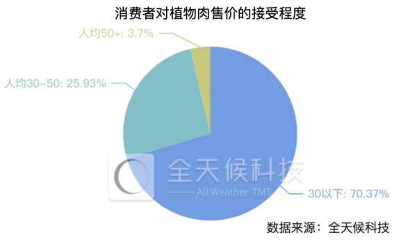全天候科技通过上述调研问卷了解到,近七成的受访者表示,希望植物肉的人均消费价格不超过 30 元。