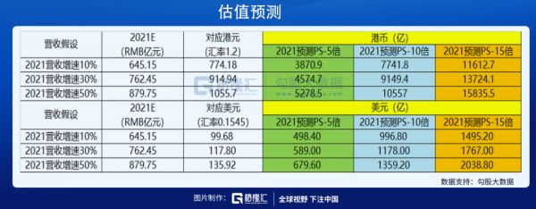 因此,如果假定2021年50%的营收增速,给与市场最高的15倍PS估值水平,则快手2021年估值最高可达到1.6万亿港元/2000亿美元。