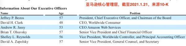 不过,在本周亚马逊向SEC提交10-K年报的档口,公司宣布贝索斯将在今年夏天卸任亚马逊首席执行官,转而出任董事会执行主席。接替者将是安迪·贾西,亚马逊云计算AWS的CEO,贝索斯曾经的技术助理,也是给公司贡献59%经营利润(2020年)的技术派“老臣”。