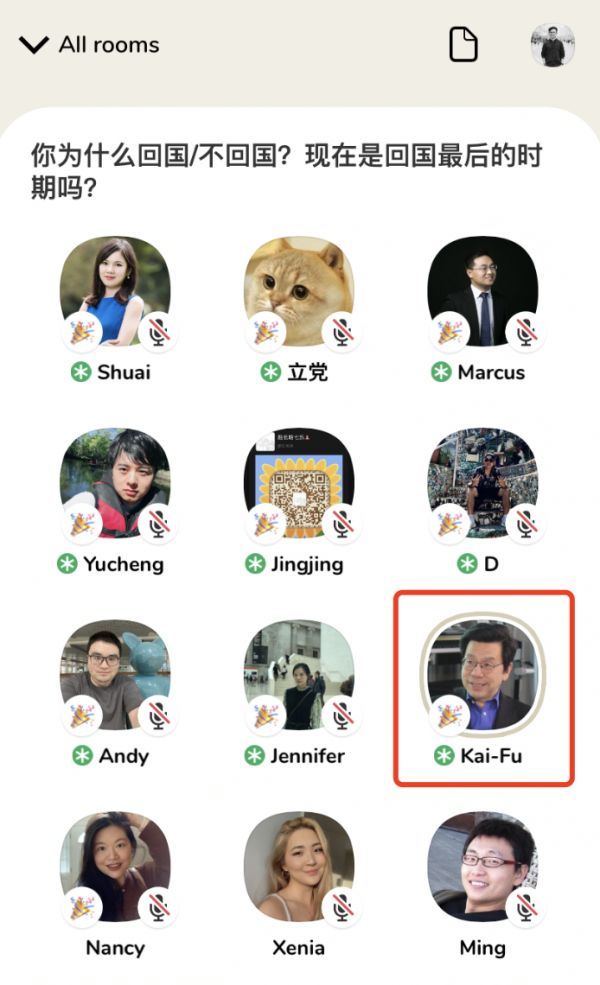 今天(2月7日)一大早我还进入了一个房间,主题是聊国外华人回国工作的话题,而且李开复也在里面。