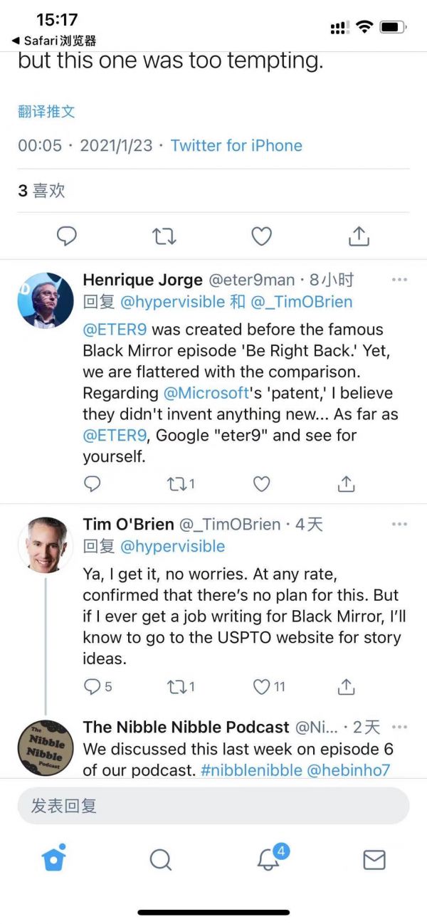 而微软也对此作出了回应。微软人工智能项目总经理 Tim O'Brien 在一组推文中澄清说,微软目前还没有让这个聊天机器人专利落地的计划。