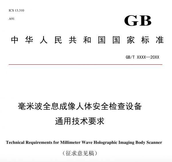 国标《毫米波全息成像人体安全检查设备通用技术要求》征求意见稿