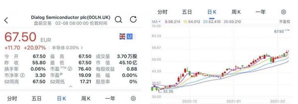 今年1月,得益于消费者对5G手机和平板电脑的需求超过预期,Dialog提高了2020年第四季度的收入预期,预计营收在4.36亿美元至4.41亿美元之间。