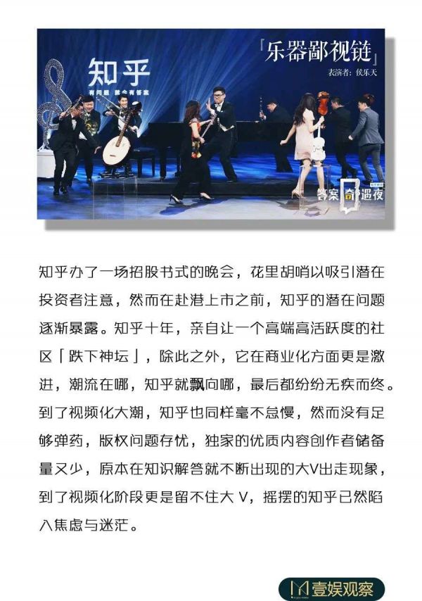 这是一场招股书式的晚会,花里胡哨以吸引潜在投资者注意,却彻底撕裂了知乎原生知识问答用户,留下一个越来越接近“二流微博和三流贴吧”的知乎官方。