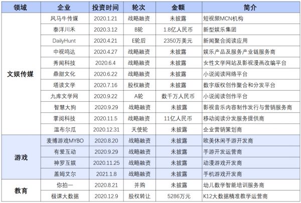 *附:以下为2020.1.1-2021.2.1字节跳动的对外投资领域: