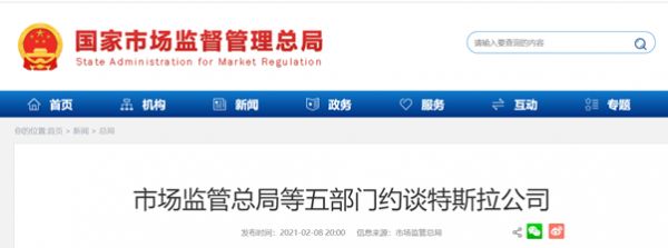 据国家市场监督管理总局2月8日晚间消息,近日,市场监管总局与中央网信办、工业和信息化部、交通运输部以及应急管理部消防救援局,就消费者反映的异常加速、电池起火、车辆远程升级(OTA)等问题共同约谈了特斯拉汽车(北京)有限公司、特斯拉(上海)有限公司,要求其严格遵守中国法律法规,加强内部管理,落实企业质量安全主体责任,有效维护社会公共安全,切实保护消费者合法权益。