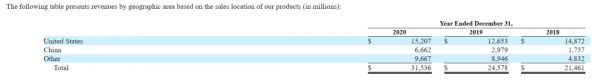 根据特斯拉向SEC递交的文件,2020年特斯拉在中国市场收入达66.62亿美元,同比大增123.6%。2020年全年,特斯拉实现营收315.36亿美元,这意味着中国市场的销售收入贡献了特斯拉营收的21%。