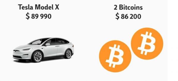 图 按当前价格2个比特币可以买一辆特斯拉Model X,图片来自Twitter