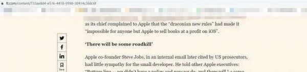 (图片来自网络。截图为FT对于乔布斯的报道以及乔布斯“there will be some roadkill”说法的出处。)