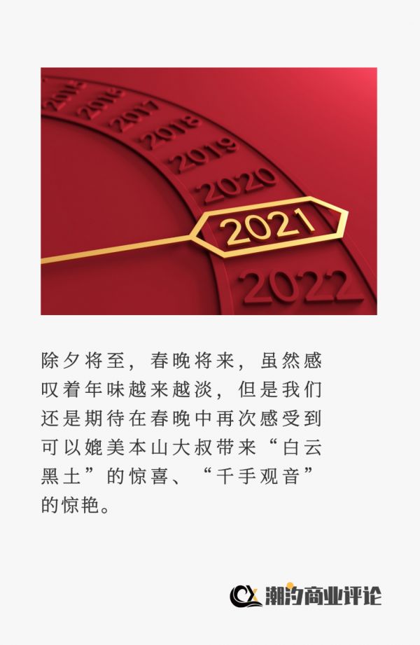 除夕将至,春晚将来,虽然感叹着年味越来越淡,但是我们还是期待在春晚中再次感受到可以媲美本山大叔带来“白云黑土”的惊喜、“千手观音”的惊艳。