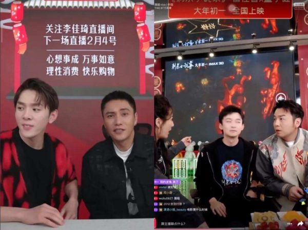 1月27日,雷佳音和董子健携《刺杀小说家》进入薇娅直播间,整体曝光量高达1.5亿,直播间互动值高达5633万以上,#雷佳音的头等于两个薇娅三个董子健#、#董子健男孩子的体重也是秘密#冲上微博热搜。1月29日,陈坤为其主演的《侍神令》也进入李佳琦直播间进行宣传。