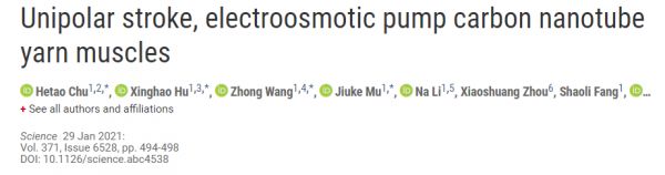 论文的第一作者是四川大学的Hetao Chu博士,通讯作者除了Baughman,还有江苏大学的Jianning Ding 博士和哈尔滨工业大学的Jinsong Leng博士。