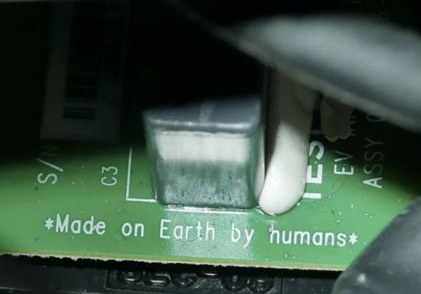 马斯克在射向太空的电路板上刻下的文字:人类造于地球