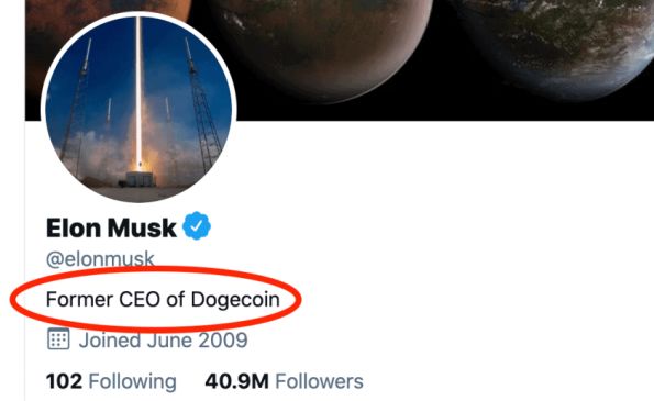 2019年的愚人节,马斯克高票问鼎了狗狗币官方推特账户发起的调查——“谁是你心目中的狗狗币CEO”,获此“殊荣”的马斯克还特意把推特账户介绍改成了“狗狗币前CEO”。