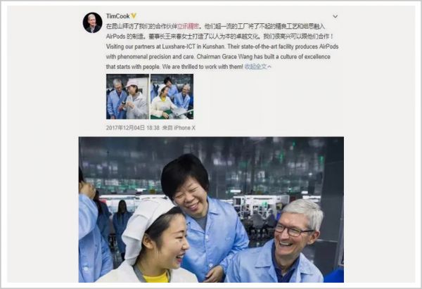 ▲王来春(中)与库克(右)在一起
