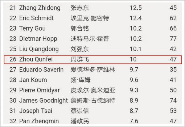 ▲2017年福布斯全球科技富豪榜