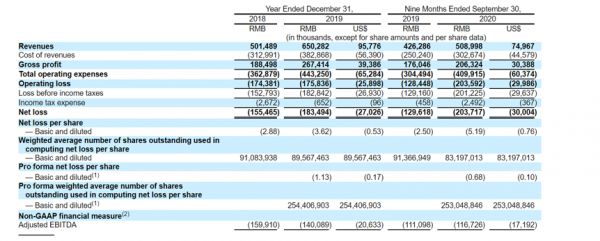 招股书显示,容联云通讯2018年、2019年营收分别为5亿元、6.5亿元(约9578万美元);2020年前9个月营收为5.09亿元(7497万美元),上年同期营收为4.26亿元。由于容联云通讯每年营收都是第四季度最高,可预估的是,容联云通讯2020年第四季度营收会超过2亿,全年营收将超过7亿元人民币。