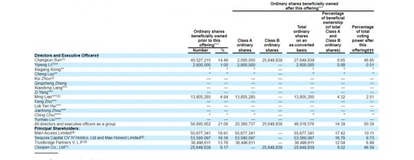 容联云通讯的招股书显示,IPO后,孙昌勋持股为8.65%,有48.95%的投票权,红杉中国作为最大财务投资人,持股16.76%,有9.73%的投票权,此外,挚信资本持股为12.04%,有6.99%的投票权。以76亿美元市值计算,孙昌勋身家达到6.6亿美元(近42亿人民币)。