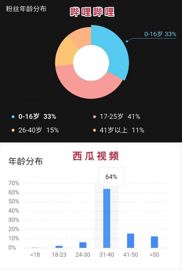 UP主“飞机上的小电视”在西瓜视频和B站的用户画像。
