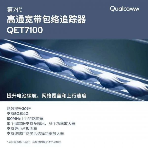 此外,第7代高通宽带包络追踪器QET7100与骁龙X65调制解调器一起提供了升级的数字算法,能够大幅优化5G功率放大器的信号质量和系统性能,提高发射信号质量,减少失真,从而大幅提升手机的上行速率。QET7100还支持手机与基站之间更顺畅的通信,扩大5G手机的网络覆盖范围。
