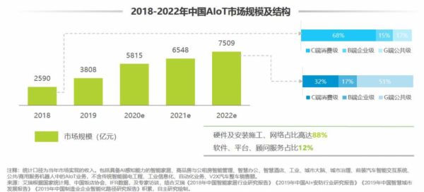 随着AI在国内爆发,物联网如火如荼,二者相结合的AIoT(人工智能物联网)概念迅速落地发展,获得政策大力支持的同时也吸引了一众头部企业的注意力。不管是以阿里云、金山云为代表的一众云服务商,还是以旷视科技、科大讯飞为代表的新锐AI公司,亦或是小米、美的这样的硬件厂商,都在这个市值远超千亿的大蛋糕面前跃跃欲试,意图乘上时代的风口。