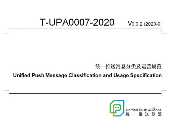 “统一推送联盟”秘书长王景尧向《IT时报》记者表示,联盟现在已经把适合中国企业的消息推送服务最小化标准建立起来,这个标准就是官网上公布的《T-UPA0002-2019统一推送接口层规范》,产业链企业可将自己的产品送到联盟,按照标准进行测试认证。另外,第二个标准——《T-UPA0007-2020统一推送消息分类及运营规范》目前正处于征求会员意见阶段。