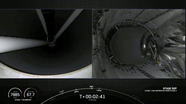 按照计划,大约8分多钟的时候,第一级火箭就会返回地球表面,并在SpaceX的驳船“当然我依然爱你”号上着陆。