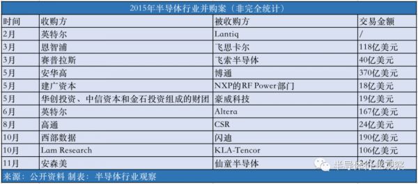 每一次半导体领域频繁发起并购,总是有迹可循。远的不谈,就说2015年。
