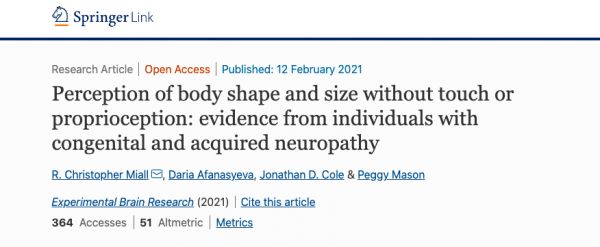 由美国和英国的科学家组成的一个研究小组最近对两个“没有触觉”的人的神经系统状况进行了一项开创性的研究——《无触觉或本体感觉对身体形状和大小的感知:来自先天性和后天性神经系统疾病患者的证据》。