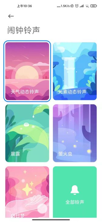 不过要说闹钟铃声,安卓党似乎更能体会到优越感。小米的 MIUI 系统很早就支持个性铃声下载,MIUI 10 中加入了天气闹钟,在不同天气下会播放不同风格的闹钟铃声,还有人声进行播报。