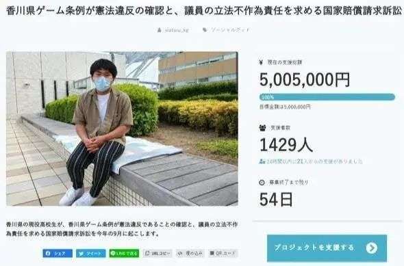 ▲ 网络募集支持反对香川县对于未成年人玩游戏指定的违宪条例,图片:itmedia。