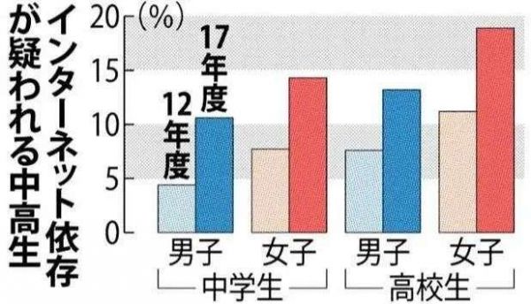 ▲ 日本中学生有93万人游戏依存的数据五年翻了一番,不过这一数据仍然可疑,图片:mainichi。