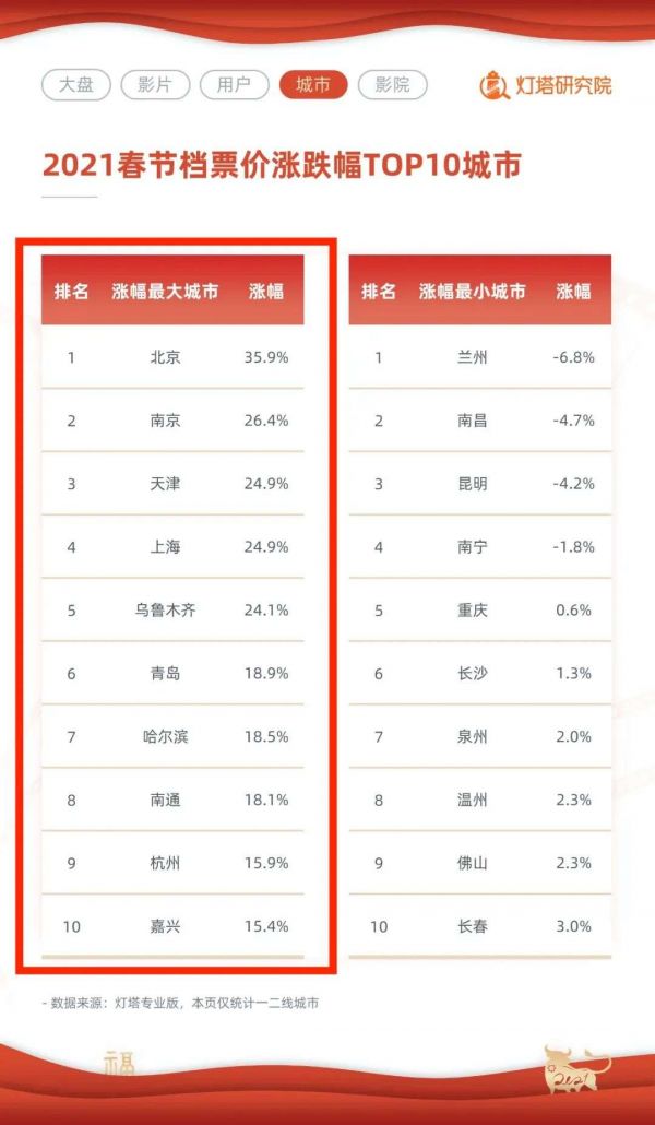 (春节档票价涨幅TOP10城市)