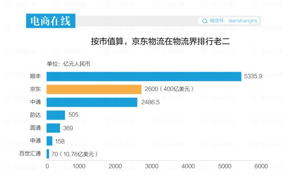 如果京东物流顺利上市,这会是京东第三家上市的子公司,估值400亿美元(约合2600亿人民币)。按市值排名,京东物流虽然只有顺丰市值(截至2月10日,5335.9亿元)的一半,但也能在物流界排行老二。
