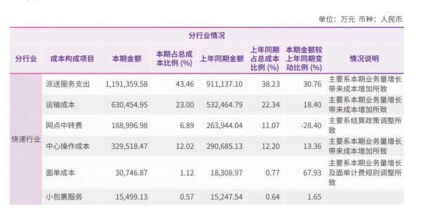 圆通仅2019年的派送服务支出,就占了总支出的三成;顺丰的职工薪酬虽然只占营业成本的12.61%,但它的外包成本占了近六成(包括外包的运输和收件派件费用),非正式人员超过20万。