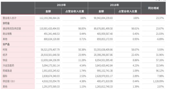 2019财年,顺丰各业务收入