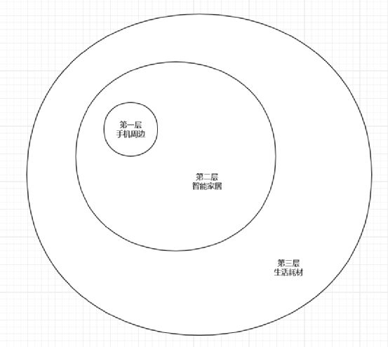 从投资之初,小米生态链企业就是按照三个圈层进行布局的。第一层是手机周边,如移动电源和二级;第二层是智能家居产品,如扫地机器人、空调、空气净化器等;第三层是生活耗材,如毛巾、床垫、玩具等。