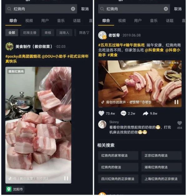 这就是视频搜索的最大好处,不用高度抽象的文字、不用静态的图片,通过短短几分钟直观视频,一种接近于人和人之间的真实沟通交流,照葫芦画瓢就能烧出一份红烧肉。从创作者角度来说,这样的搜索算法,也降低了内容竞争门槛,提高内容曝光,增加粉丝黏性。