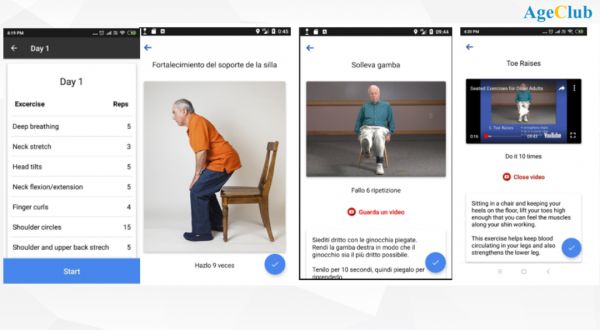 AgeClub试用了senior fitness这款软件一段时间,发现老年线上健身内容无论在国内还是国外都针对的是行动不方便、体能较差的中老年人。