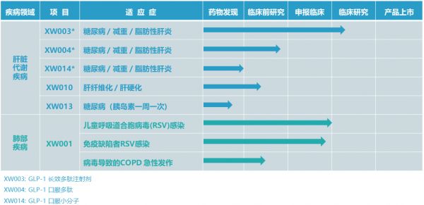 「先为达生物」成立于2017年,是一家临床阶段的创新生物药研发公司,专注于慢性代谢性和免疫性疾病领域,致力于开发全球首创或同类最佳大分子创新药物。公司拥有口服多肽药物、大分子吸入等核心技术平台,并基于这些核心平台建立了包括6个候选创新药物的研发管线,希望治疗非酒精性脂肪性肝炎(NASH)等多种疾病。其中XW003已在海外完成I期临床研究,计划在2021年开展多项代谢性疾病(糖尿病、肥胖症和非酒精性脂肪性肝炎等)的II期临床试验;另外预计公司将于2021年递交两项临床试验申请,其中包括一款口服GLP-1药物。