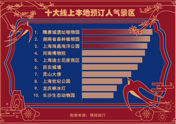 本地周边游火爆。携程今日发布的春节旅游消费数据显示,本地预订景区门票的订单量比2019年春节增长超300%。截止2月17日,上海、北京、苏州、洛阳、深圳等地景区的预约人数最多,成为今年春节景区旅游的热点城市。