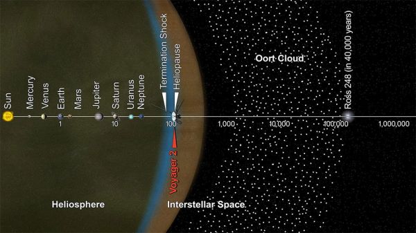 2018年12月10日,美国宇航局确认,旅行者2号已于2018年11月5日离开太阳系,成为第二个进入星际空间的人造物体,旅行者1号是第一个。