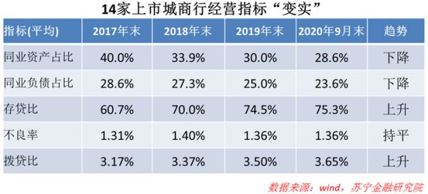 另外,本文讨论的上市中小银行,本就属于地方性银行的佼佼者。仍以不良率来说,2020年9月末,14家上市城商行的平均不良率仅为1.36%,比城商行整体低0.92个百分点,也明显优于股份制银行和国有大行。对于上市中小银行,唯有把它们从中小银行群体中剥离,去掉有色眼镜,才能够看得准确。
