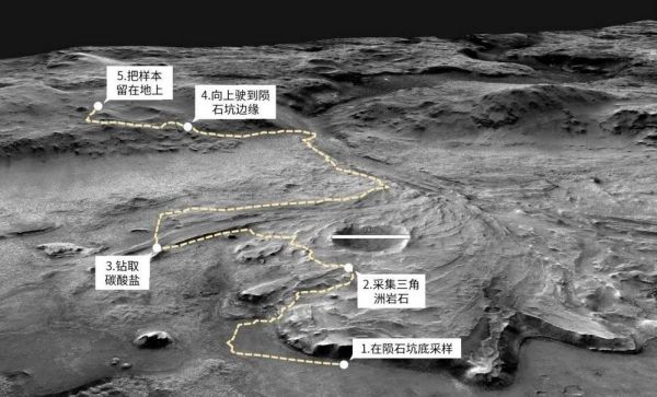 火星车还可以从陨石坑底往上爬,爬到三角洲上去,在那里采集富含粘土的样本和其他岩石。在这之后,火星车还能开到可能富含碳酸盐的岩石上进行钻取,再开到耶泽罗的边缘巡视一番。