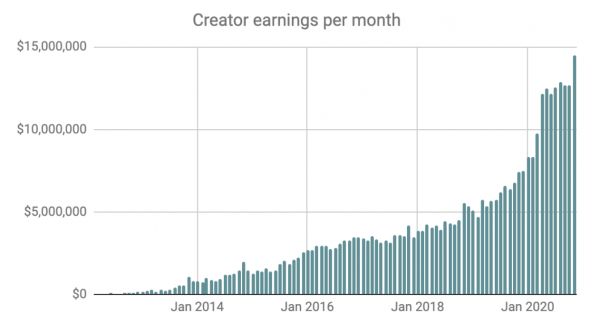 而且我们的工作是有效的:我们的创作者每年赚取超过1.75亿美元的收入,我们每年产生1100万美元的收入,年增长85%。