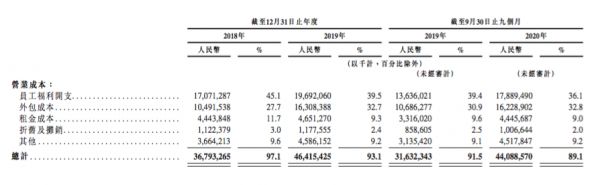 不过值得一提的是,收入在增加,营业成本也在同步增长,2020年前三季度的营业成本相比上年同期增长了39.4%,从316亿元增长至441亿元。同期的营收增幅为43.2%,也就是说基本是“一分耕耘一分收获”。