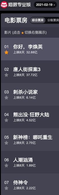 (2月19日春节档票房统计)