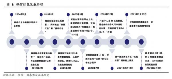 微信红包定制功能于2019年1月正式对外开放,主要是用于满足企业向员工发红包时的视觉统一需求。彼时,微信尚未将红包封面的设计权限公开,只有企业管理员才可以在后台定制。猪年春节就有1.5万家企业参与了微信春节定制红包。