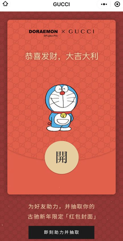 比如奢侈品牌Gucci推出的牛年特别款红包封面,需要填写个人信息,注册会员,才能以抽奖形式,有概率地领取红包封面。行业人士分析,Gucci的红包封面是一场有概率抽奖活动,充分调动用户自发参与到品牌互动中来,通过社交分享与裂变,帮助品牌实现高曝光。